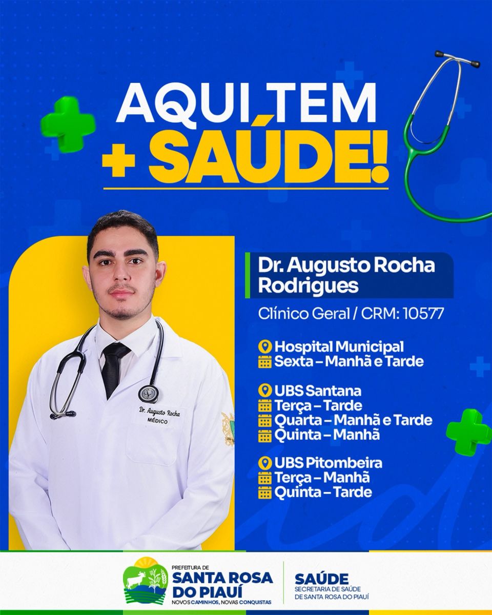 O atendimento em saúde segue fortalecido com a atuação de profissionais qualificados no Hospital Municipal e nas Unidades Básicas de Saúde (UBS) da sede e da zona rural.