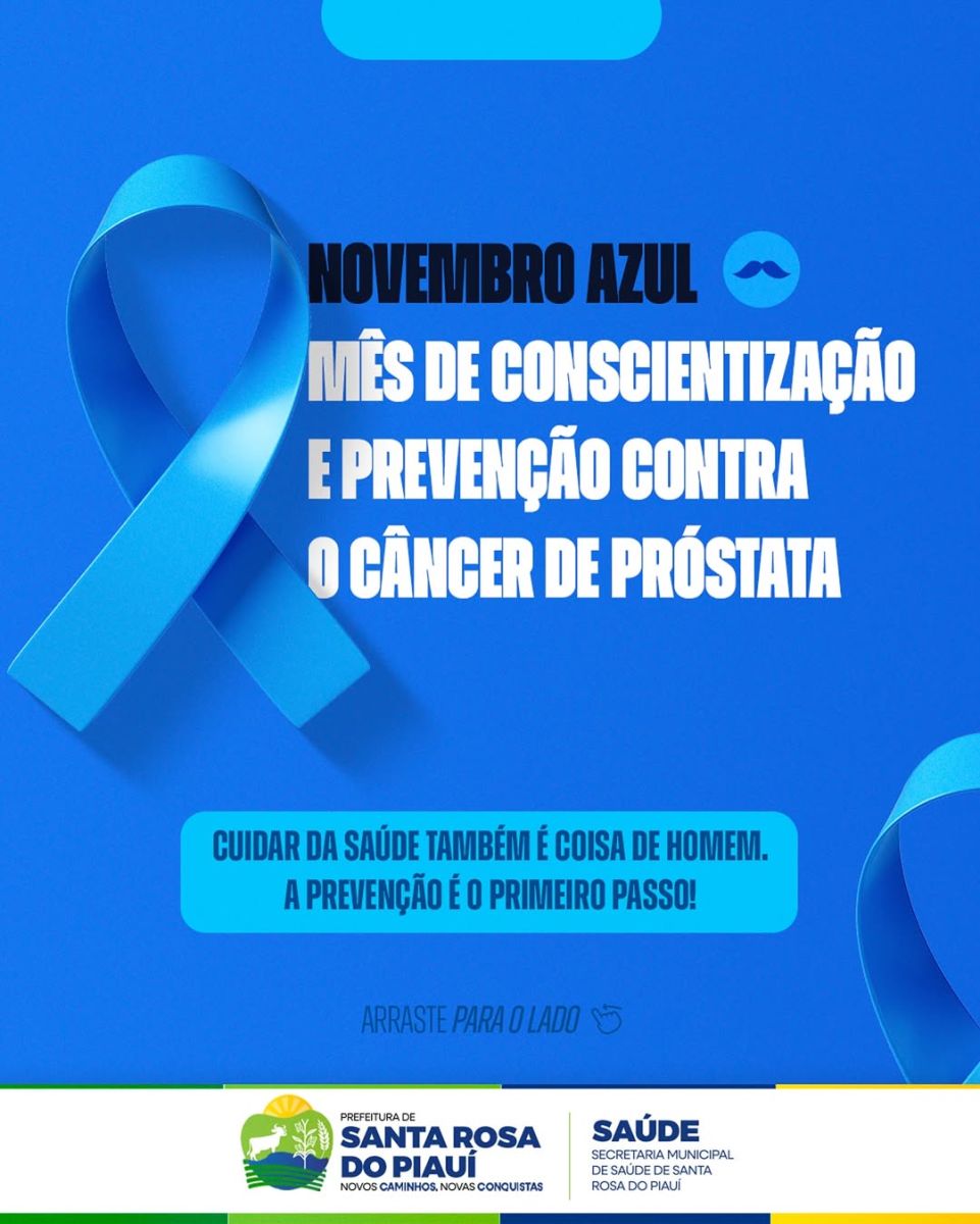 O município está promovendo a campanha Novembro Azul, voltada à conscientização sobre a importância da prevenção e do diagnóstico precoce do câncer de próstata. A iniciativa incentiva a adoção de hábitos saudáveis, a prática regular de atividades físicas e a manutenção dos exames em dia.