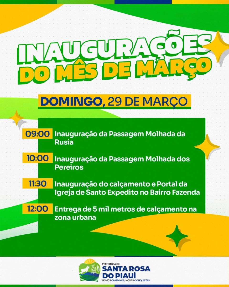 A população está convidada a acompanhar esse momento e participar das inaugurações, celebrando mais conquistas para Santa Rosa do Piauí.