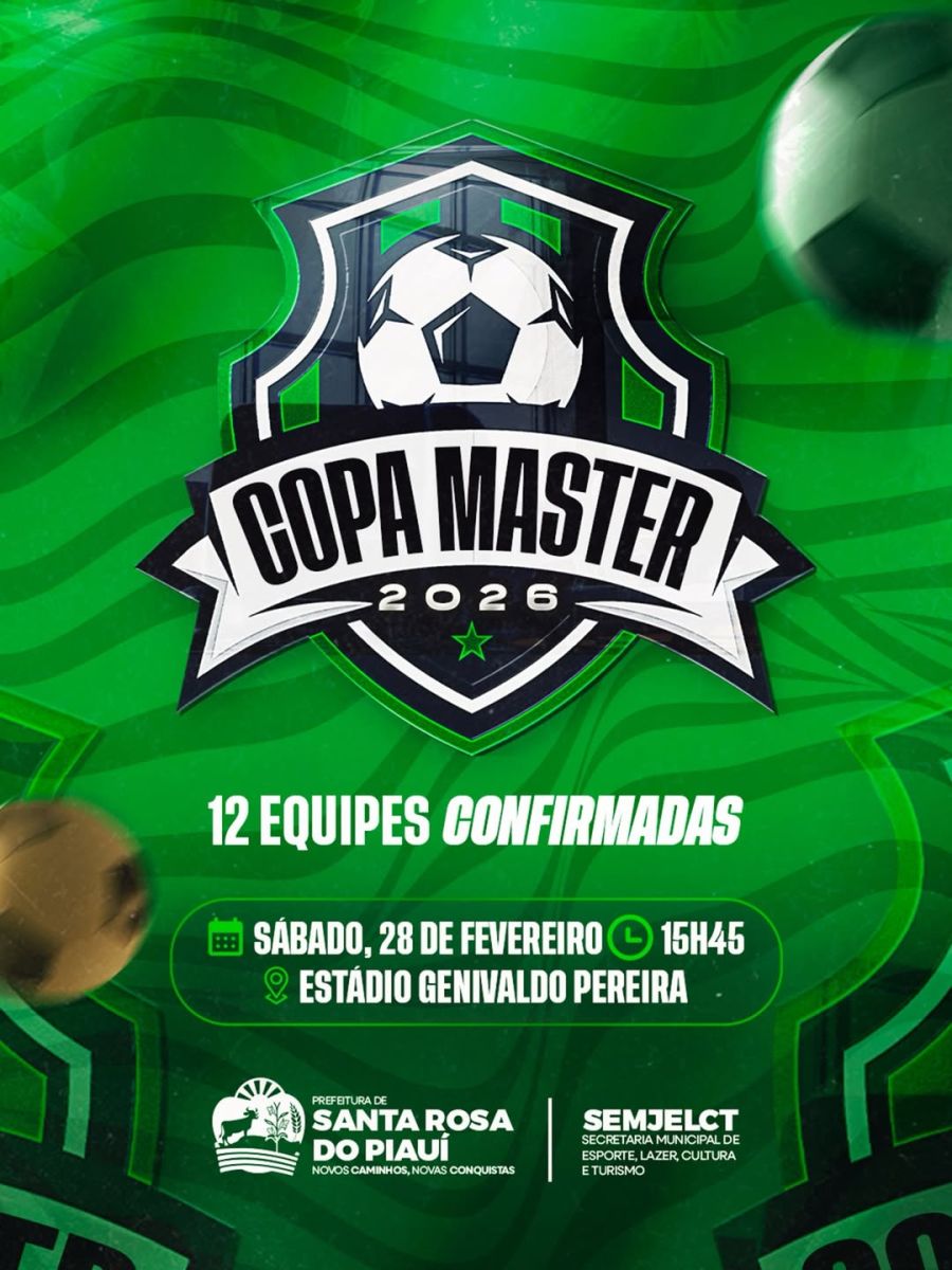 A Copa Master 2026 já conta com 12 equipes confirmadas e promete agitar o cenário esportivo de Santa Rosa do Piauí, com jogos marcados por competitividade, espírito esportivo e forte presença da torcida.